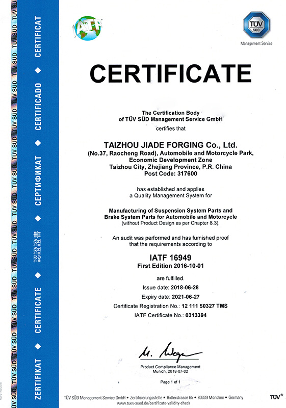 臺州嘉德鍛造有限公司,位于浙江省東南美麗的黃金海岸――玉環(huán)縣,公司創(chuàng)建于1995年6月,是一家集研發(fā)、鍛打、熱處理、精加工于一體的鋁件、鋁鍛件(aluminum forging),專業(yè)制造廠商。目前公司主要生產(chǎn)鋁制(鋁合金鍛造)汽車配...